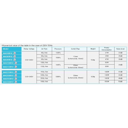 Ces pompes à air compactes sont économe en énergie, silencieuses et produisant peu de chaleur interne, ce qui prolonge la durabilité des membranes en caoutchouc synthétique (EPDM).